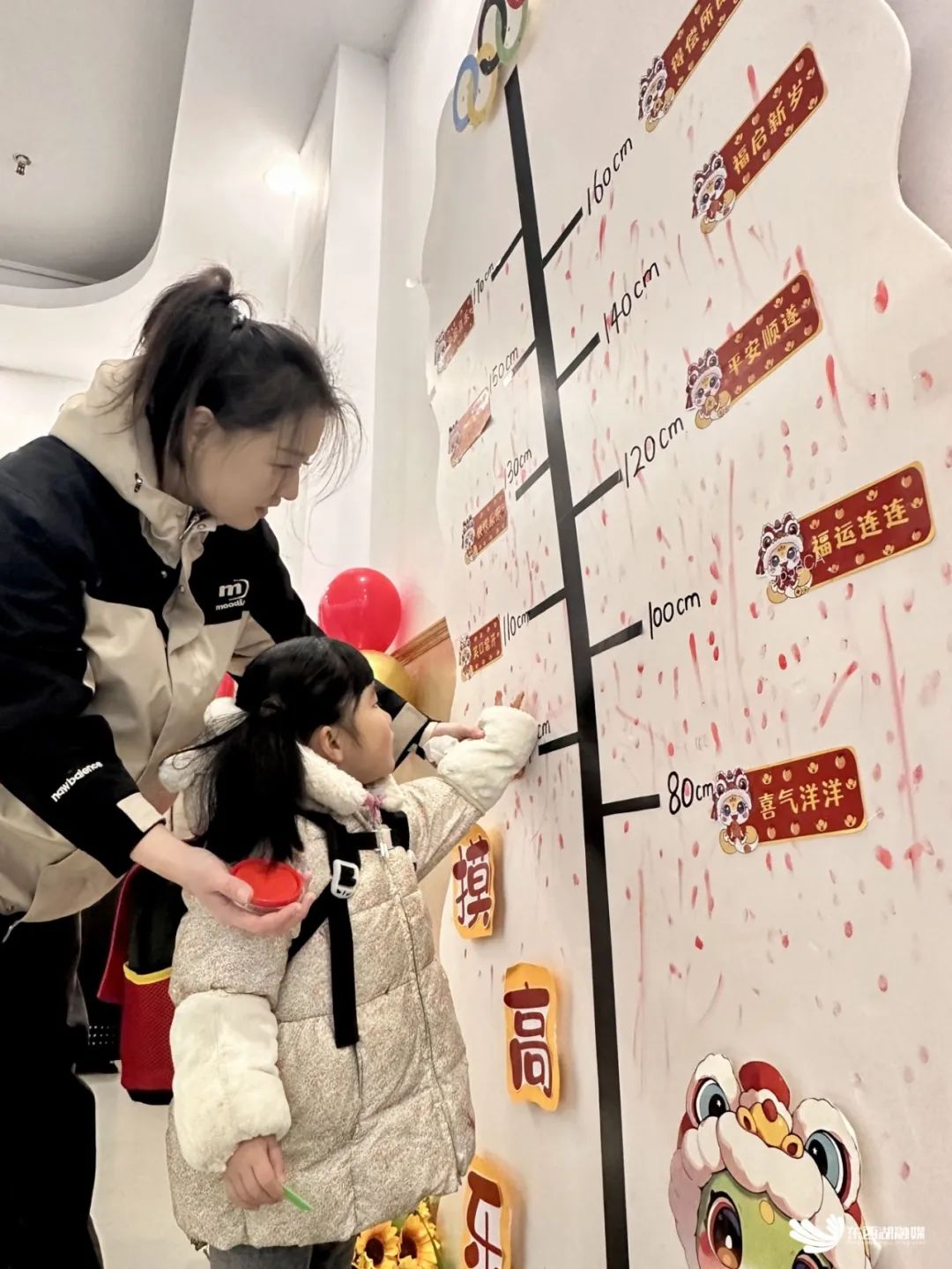 “哇,我快摸到最高的地方啦!”在大二班的“迎春祈福跳高乐”活动区,孩子们踮起脚尖,奋力跃起,手指沾满红色印泥后触碰到身高尺的高处。据介绍,这一环节的设计有中国传统“摸高祈福”习俗,希望孩子们在新学期“身体节节高,成长步步稳”。