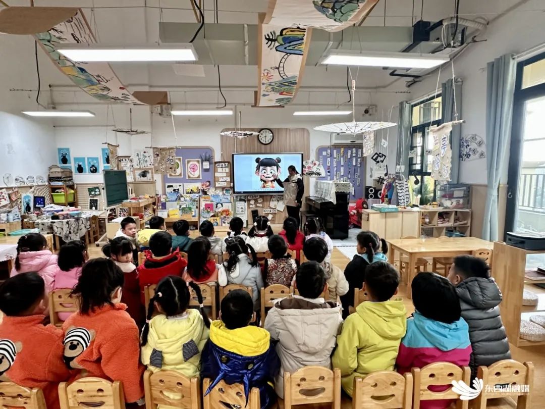 “开学第一课”上老师以春节档热门动画电影《哪吒》为话题,与孩子们展开互动。