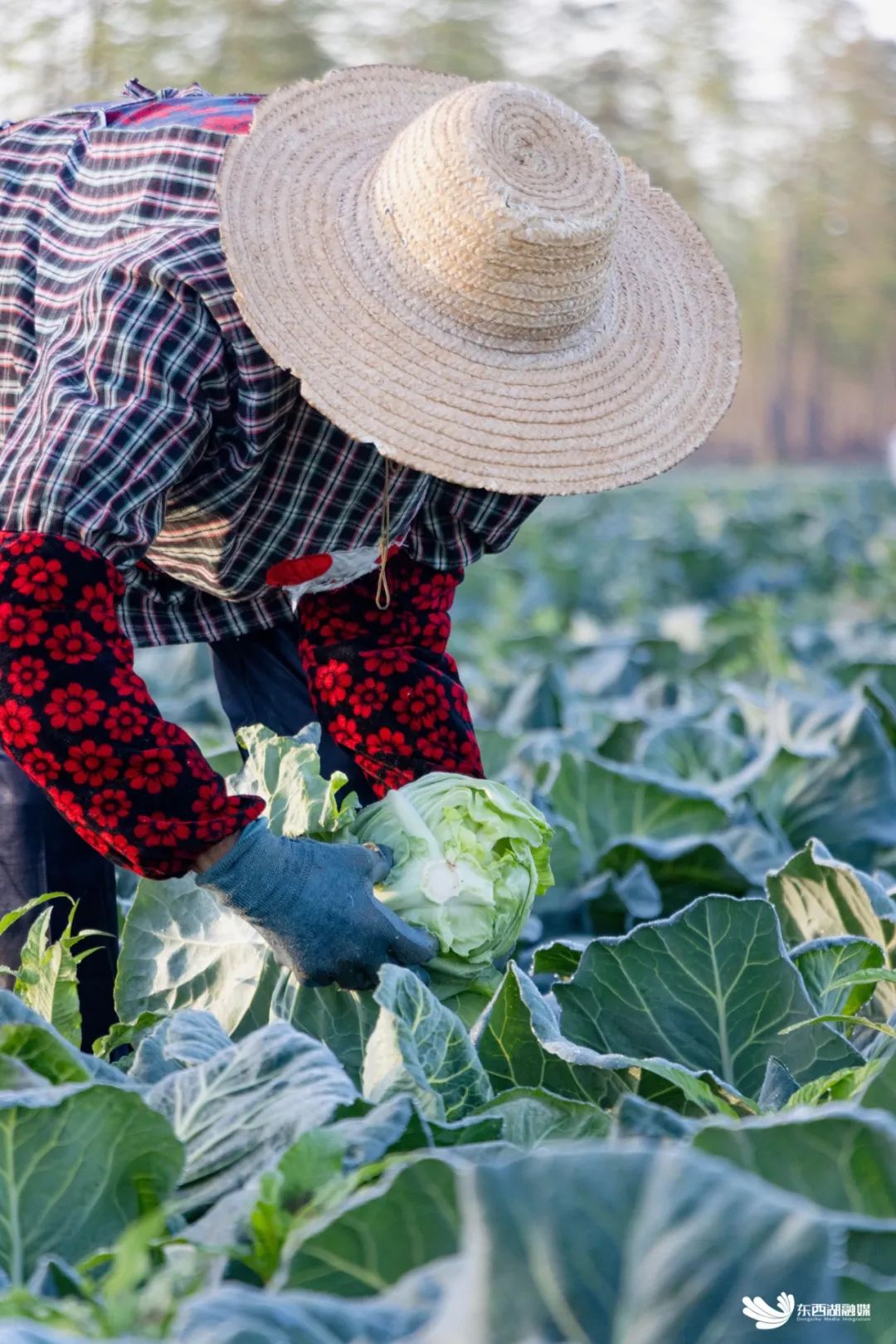 5:30,西湖大农仓的万亩沃土,还笼罩在深蓝色的天幕下。一颗颗青翠、饱满的牛心包菜业已成熟,还在做着晨露浸润的美梦,叶片随着微风轻轻翕动。