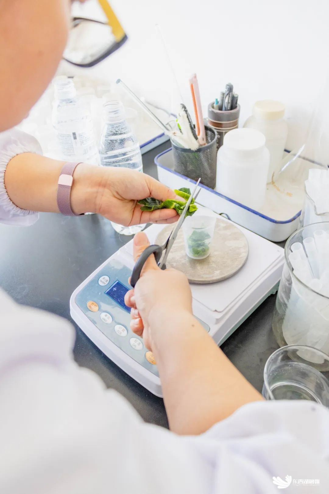 实验室里,身着白大褂的李雁蓉紧盯农残快检试剂,“试剂可快速检测水果、蔬菜中的有机磷和氨基甲酸酯类农药残留,检测通过才能给蔬菜办理‘健康证’。”