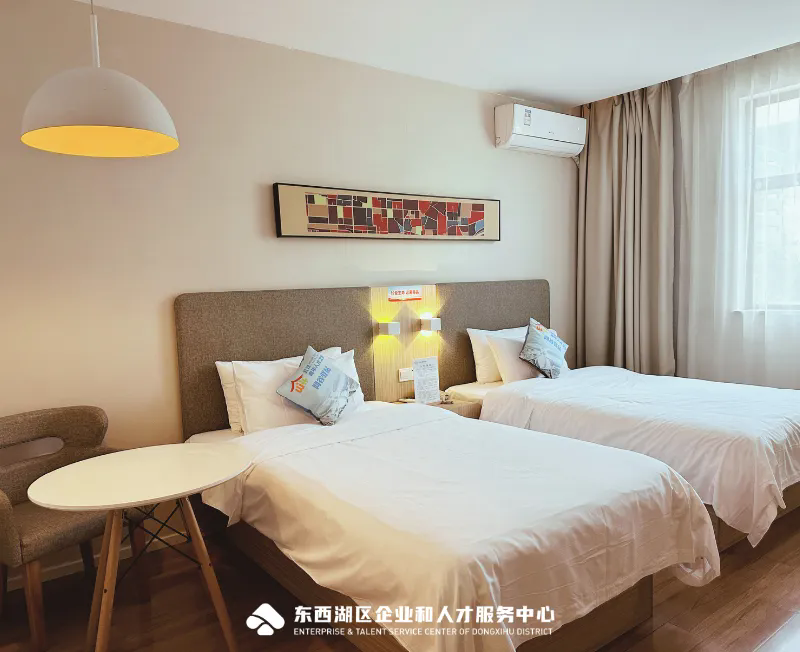 网谷驿站可提供50个房间和80张床位,户型有单人间、双人间选择。室内严格按照“拎包入住”标准,配有书桌、舒适大床、宽带、电视机等完善生活设施,24小时供应热水。