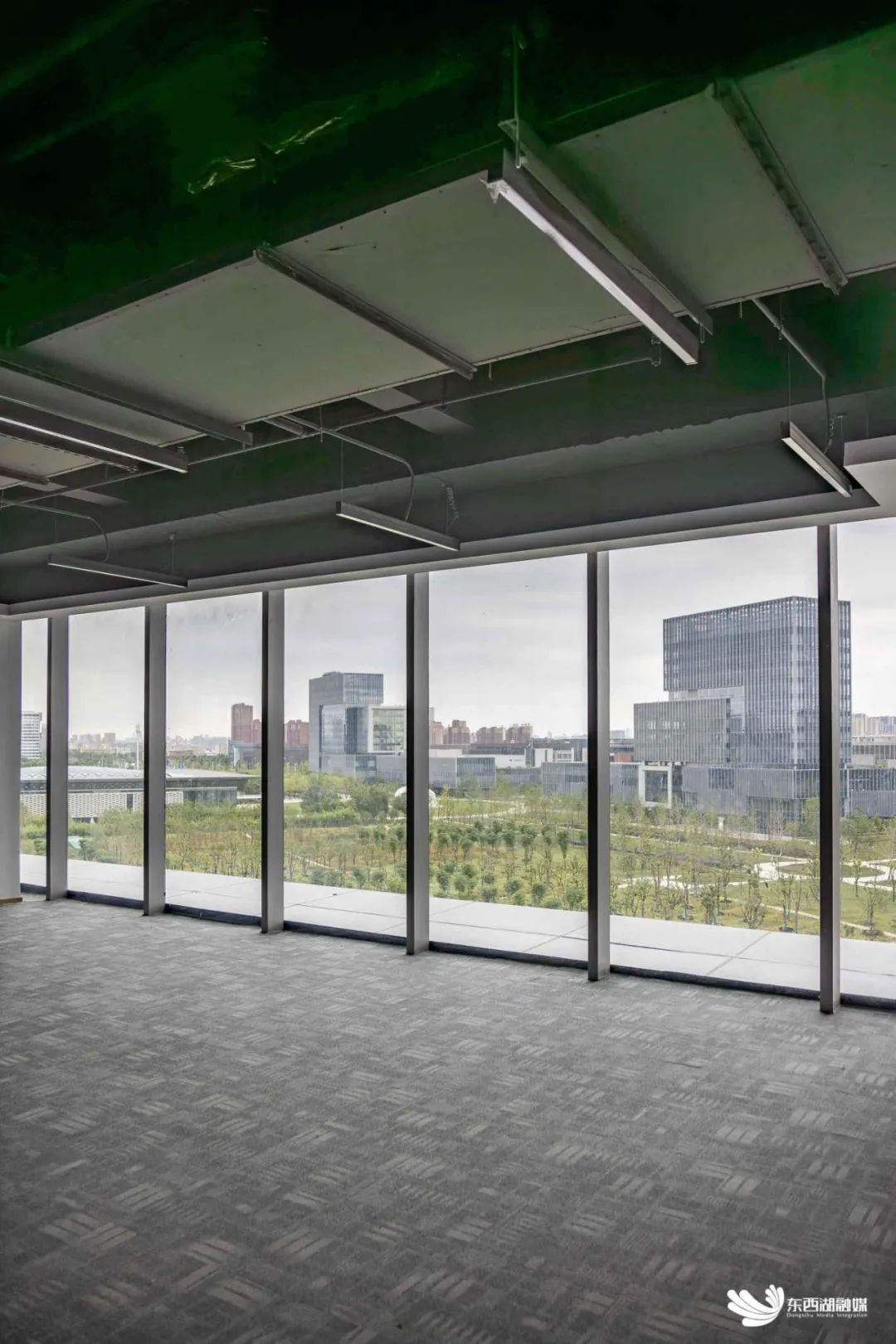 网安软件园项目地处径河北岸,东邻网安基地共享中心和欧博会展酒店,南与网安基地创新中心和国家网安学院一街之隔,北接泛半导体行业大型产业园区,西依东流港水域接壤网谷运动公园,在众多企业楼宇和绿化公园合力托举下惊艳崛起。