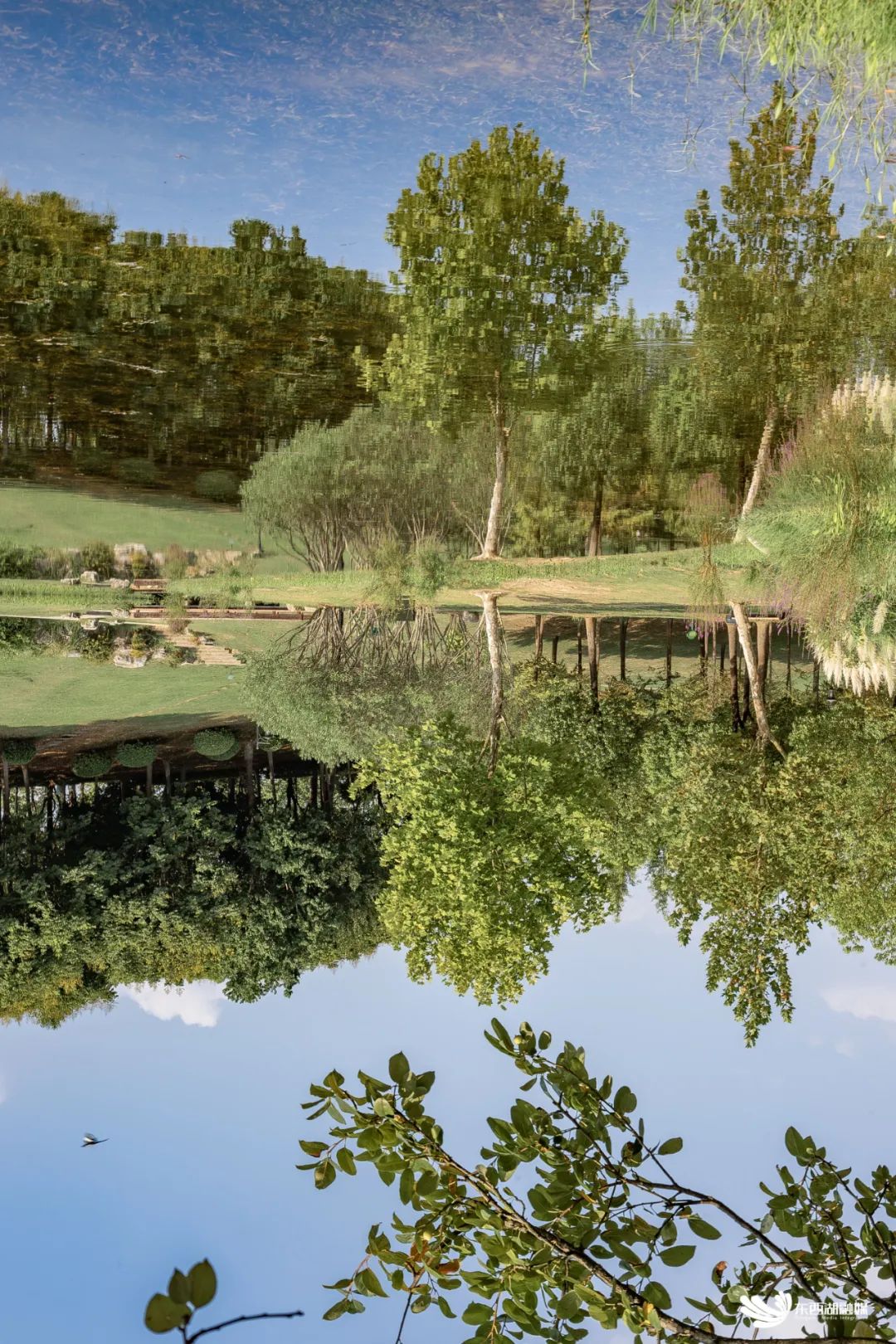 码头潭文化遗址公园水中倒映的景色如真如幻、别样曼妙。