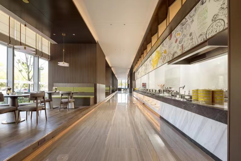 酒店配备包含健身房、瑜伽室、娱乐休闲室及自助洗衣房的共享空间,设有自助餐厅、中餐厅零点空间、9间面积不等的中餐厅包房及星巴克咖啡服务等配套设施。