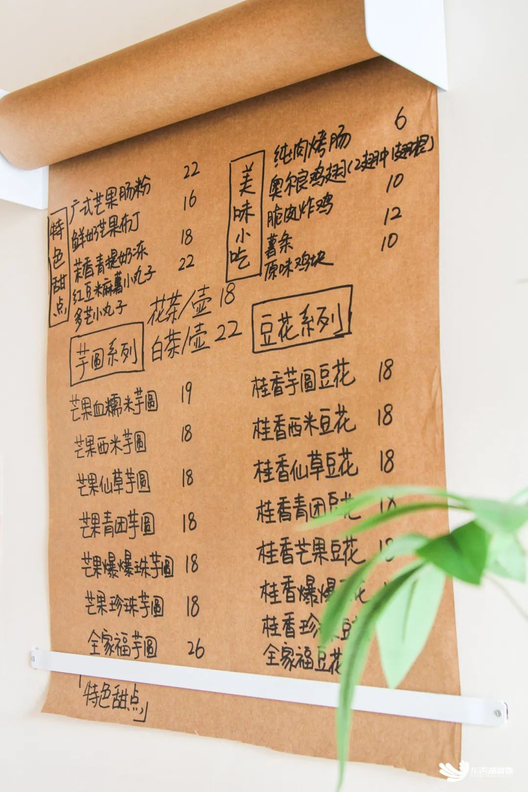 为了搭配马池二村的田园风情,花甜喜柿糖水铺的设计装修主打田园风,因为喜欢花,又怀念小时候看过的电影《花田喜事》,就借用了谐音来给店取名。在店里,顾客可以吃到豆花、布丁、龟苓膏等20多种甜品和奥尔良烤翅、脆皮炸鸡、烤肠、薯条等美味小吃,还能品尝特色茶饮。