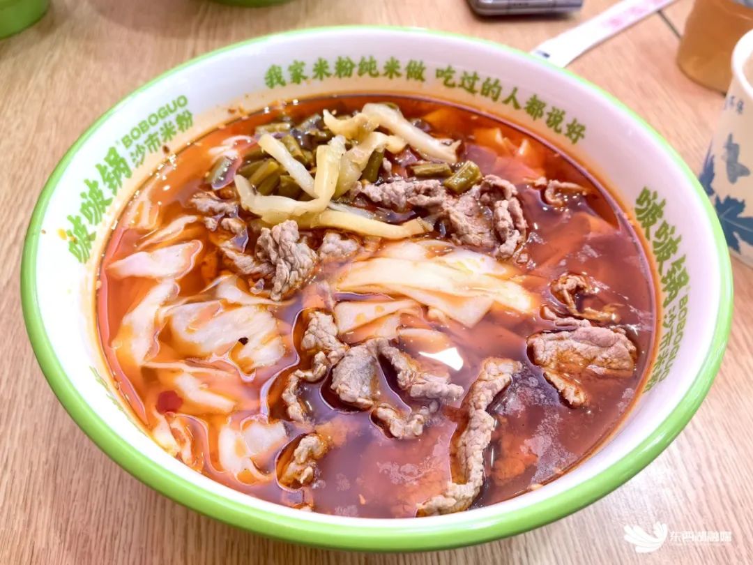 点上一份牛肉面或牛肉粉,从上到下都是红彤彤的汤底,口感浓郁、香辣十足。
