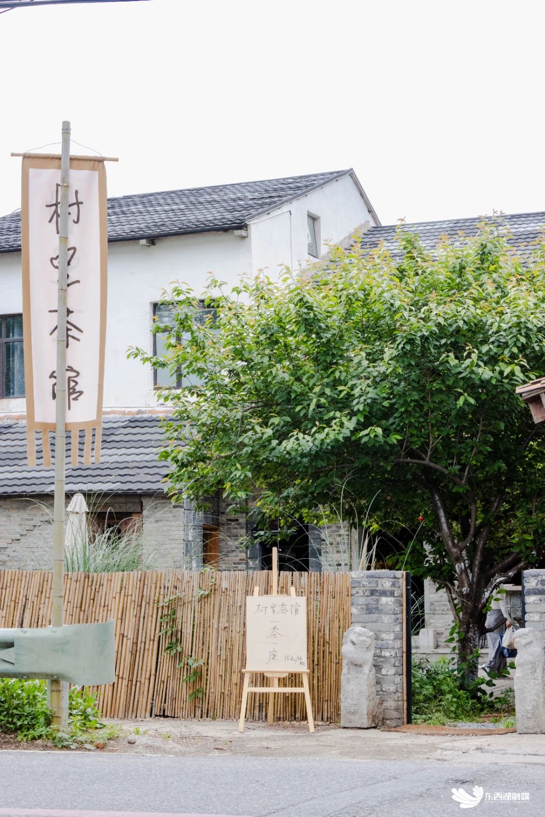 穿过紫藤长廊,踏过碎石小路,米黄色的外墙,古朴的大门,招牌“村里茶馆”格外引人注目。这家中式茶馆在五一期间正式开业。