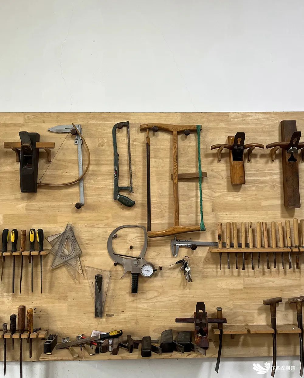 记者在吴友全的制琴作坊看到,在一间屋子墙面上,大大小小的制琴工具分门别类样样俱全。一旁的制作台上,摆放着一张古琴的半成品。吴友全小心翼翼的用凿子凿着木板,随着凹槽的逐渐显现,琴的轮廓也渐渐清晰起来。外面不远处的屋子里,则整齐码放着收藏多年的木料。