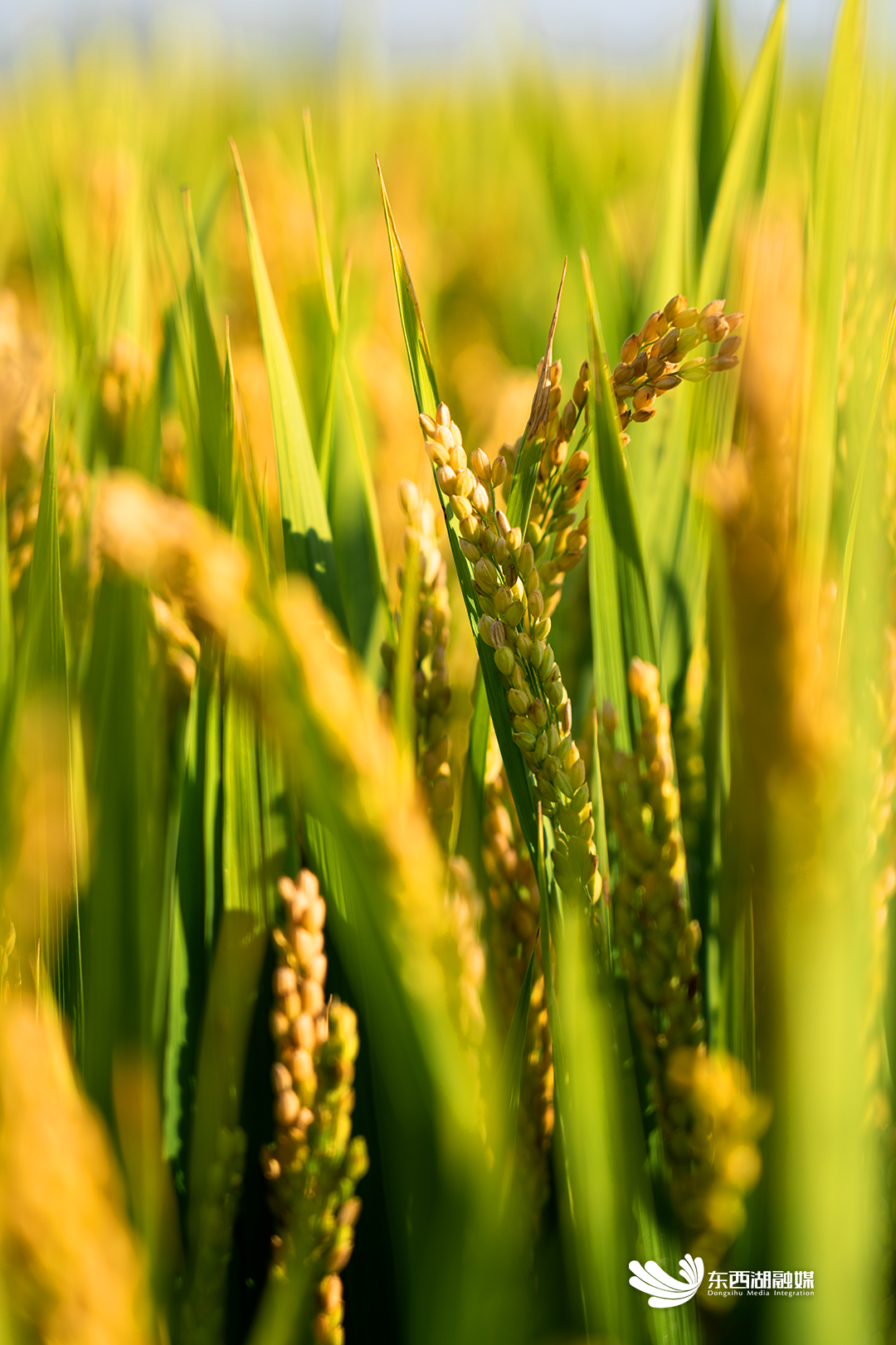 踩在结实的田埂上,看沉甸甸的稻穗低下头,被风吹着,沙沙地摇摆起来,泛起金色海浪。