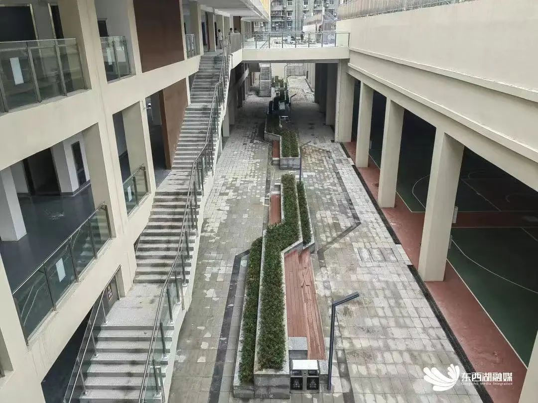 管玮是该校02级学生,去年7月进校踏勘。老校改造后,图书馆、报告厅、风雨操场、架空球场、下沉式庭院一应俱全,空间布局上特意凸显南侧高大的乔木和水杉,给老生留一方青春记忆。