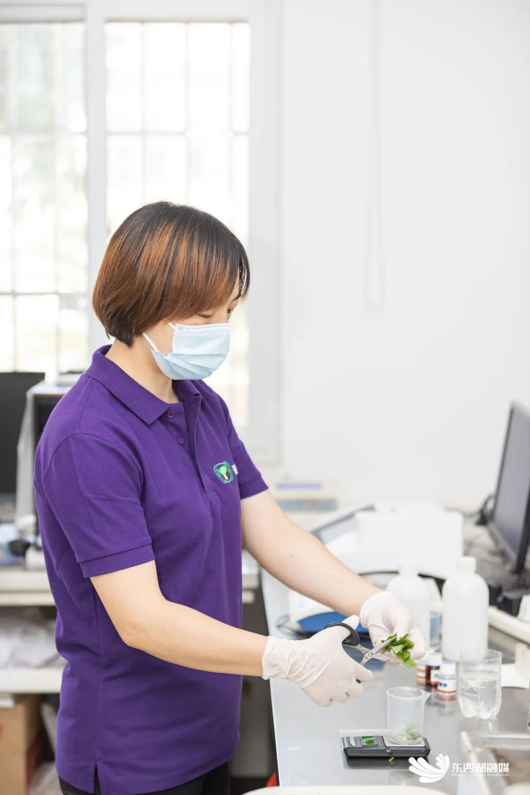 蔬菜合作社检测人员对新采摘的蔬菜进行抽样检测。