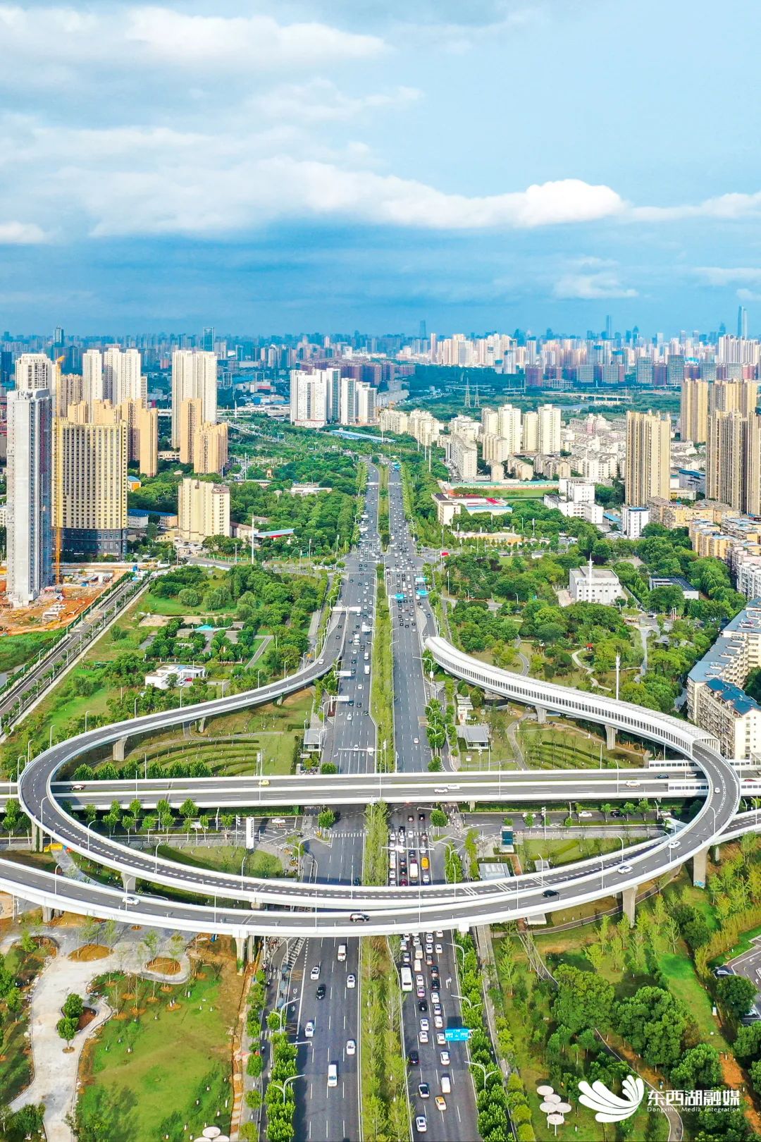 一渠樱花溪水穿城而过、两条地铁在此交会、六座桥梁飞跨径河、多条道路完工通车、百幢高楼拔地而起。以水为媒、临水建园、依水添景,人均公园绿地面积约8.35平方米。