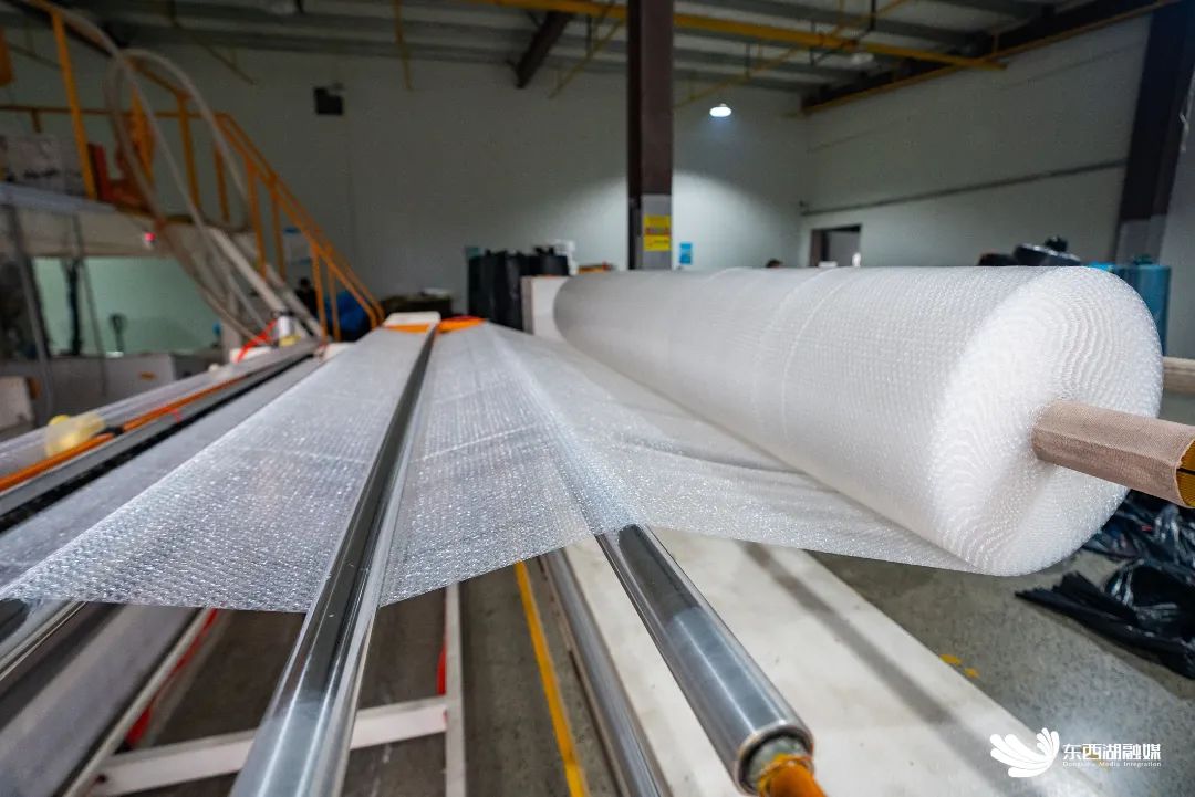“这条生产线每分钟生产150个快递包装袋。”紫牛包装总经理袁攀介绍,公司拥有原膜生产线4条、深加工生产线12条,一天出膜量达到4吨,可生产气泡膜、气泡袋、气泡信封袋、PE热封膜、快递袋及各种生物可降解包装制品。