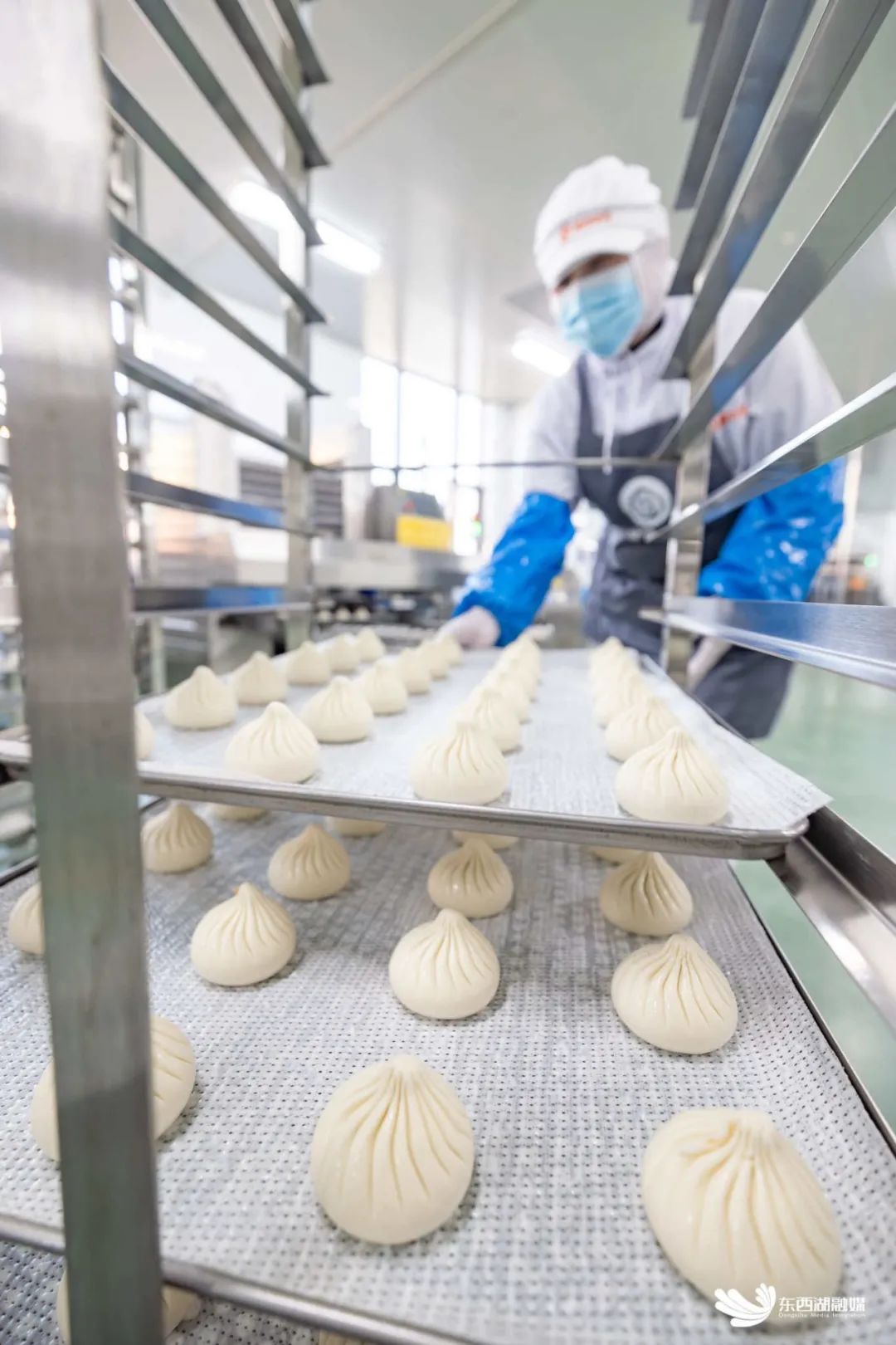 记者走进巴比食品武汉鲜食中央厨房项目生产大楼的面点加工车间,香气扑鼻,看到面粉在水、冰、酵母的催化下和成面团,在面团输送机的牵引下,完成自动切割、上面、压面、卷面、注馅等多道工序,18褶包子从成型机下“钻”出来,整齐划一。