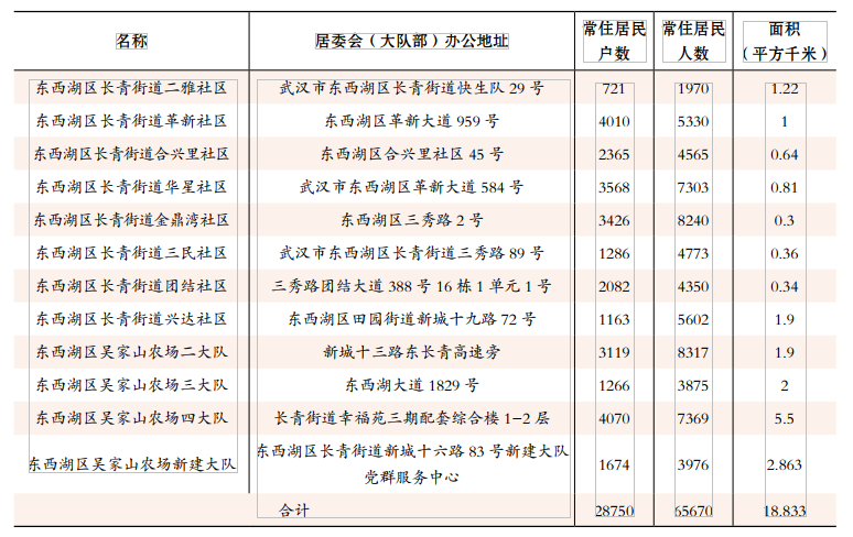2022年长青街道社区(大队)基本情况一览表