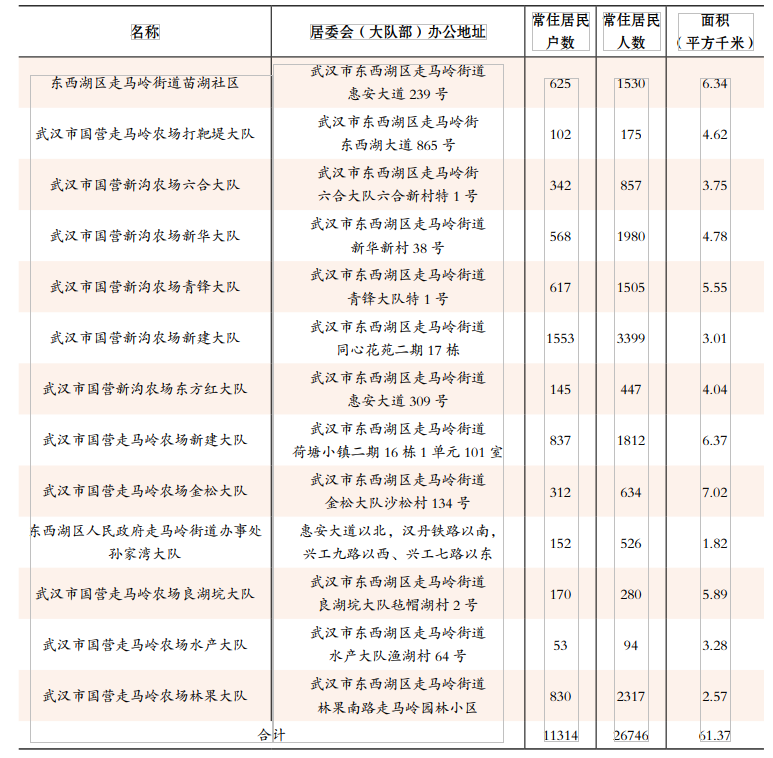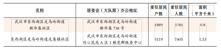 2022年走马岭街道社区(大队)基本情况一览表
