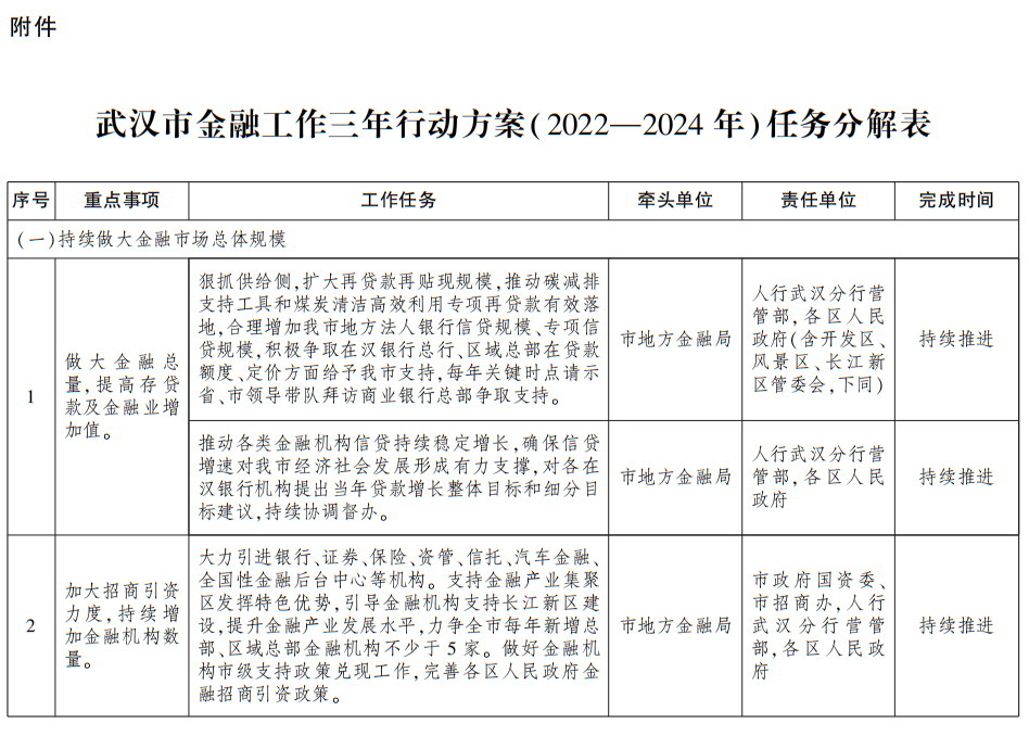 附件:武汉市金融工作三年行动方案(2022—2024年)任务分解表