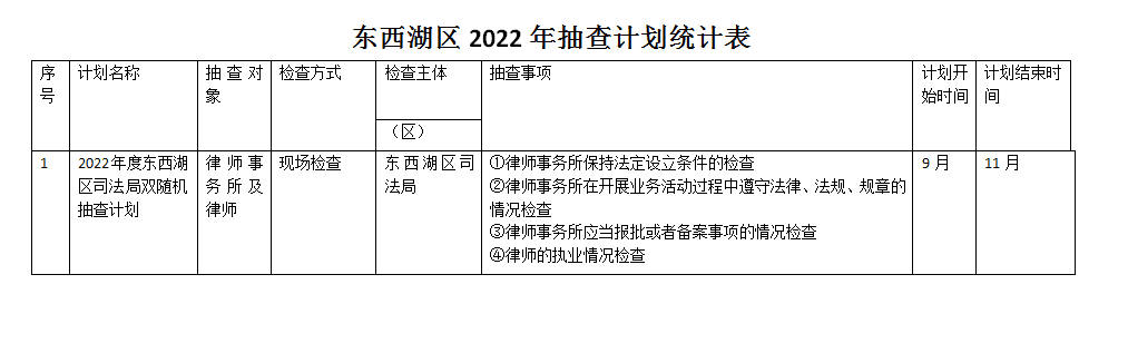 根据省、市、区关于“双随机、一公开”工作要求,结合我局实际情况,现将2022年度欧博官网 司法局“双随机、一公开”抽查工作计划公示如下: