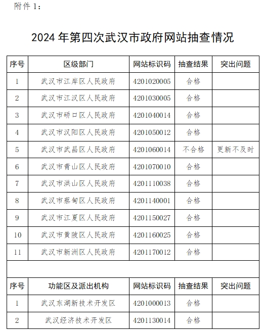附件:1.《2024年第四次武汉市政府网站抽查情况》