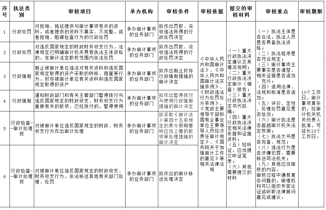 区审计局重大行政执法决定法制审核目录清单