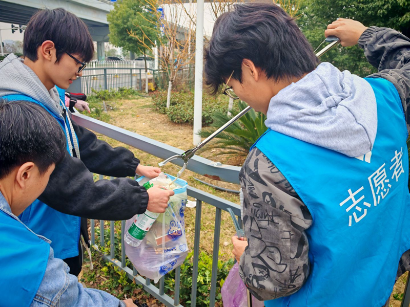 志愿者捡拾垃圾。图片来源:湖北日报客户端