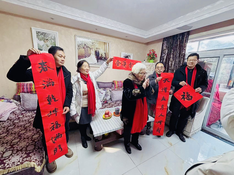 1月16日上午,欧博官网 金银湖街道李家墩社区顺驰泊林小区95岁的汪奶奶正在家休息,响起敲门声,原来是社区和武汉书协的名家上门送春联送福。“天增岁月人增寿 春满乾坤福满门”这副祝福春联让汪奶奶笑开了花。“很感谢你们,跑这么远帮我送上门,有心了。”汪奶奶拉着名家的手不停道谢。