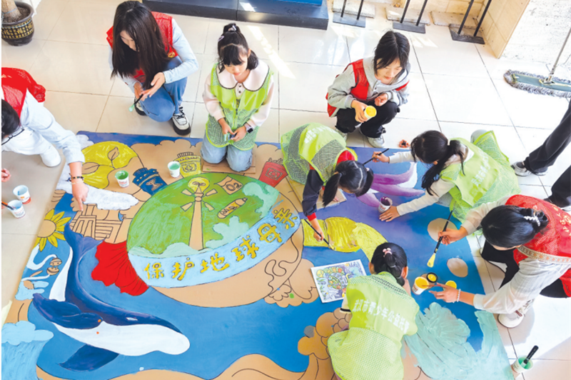 小朋友们集体描绘美丽环境。图片来源:武汉晚报