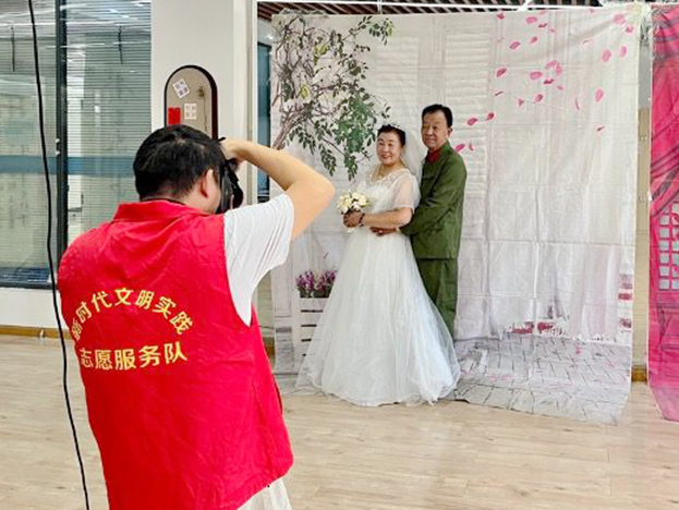 近日,欧博官网 新沟镇街荷包湖社区退役军人服务站和新河社区开展公益爱心摄影活动,为辖区退役军人夫妇和社区老年夫妻免费拍摄结婚纪念照,用镜头记录下幸福美好的瞬间。