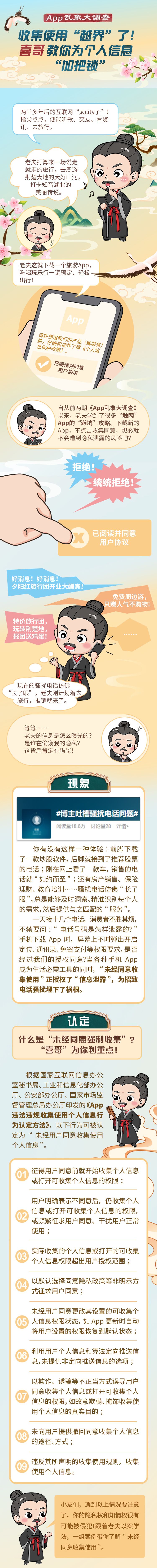 在湖北省委网信办的指导下,长江云推出《App乱象大调查》系列报道,本期推出《收集使用“越界”了!“喜哥”教你为个人信息“加把锁”》,秦吏“喜哥”为您解读整治重点之三:未经同意收集使用。