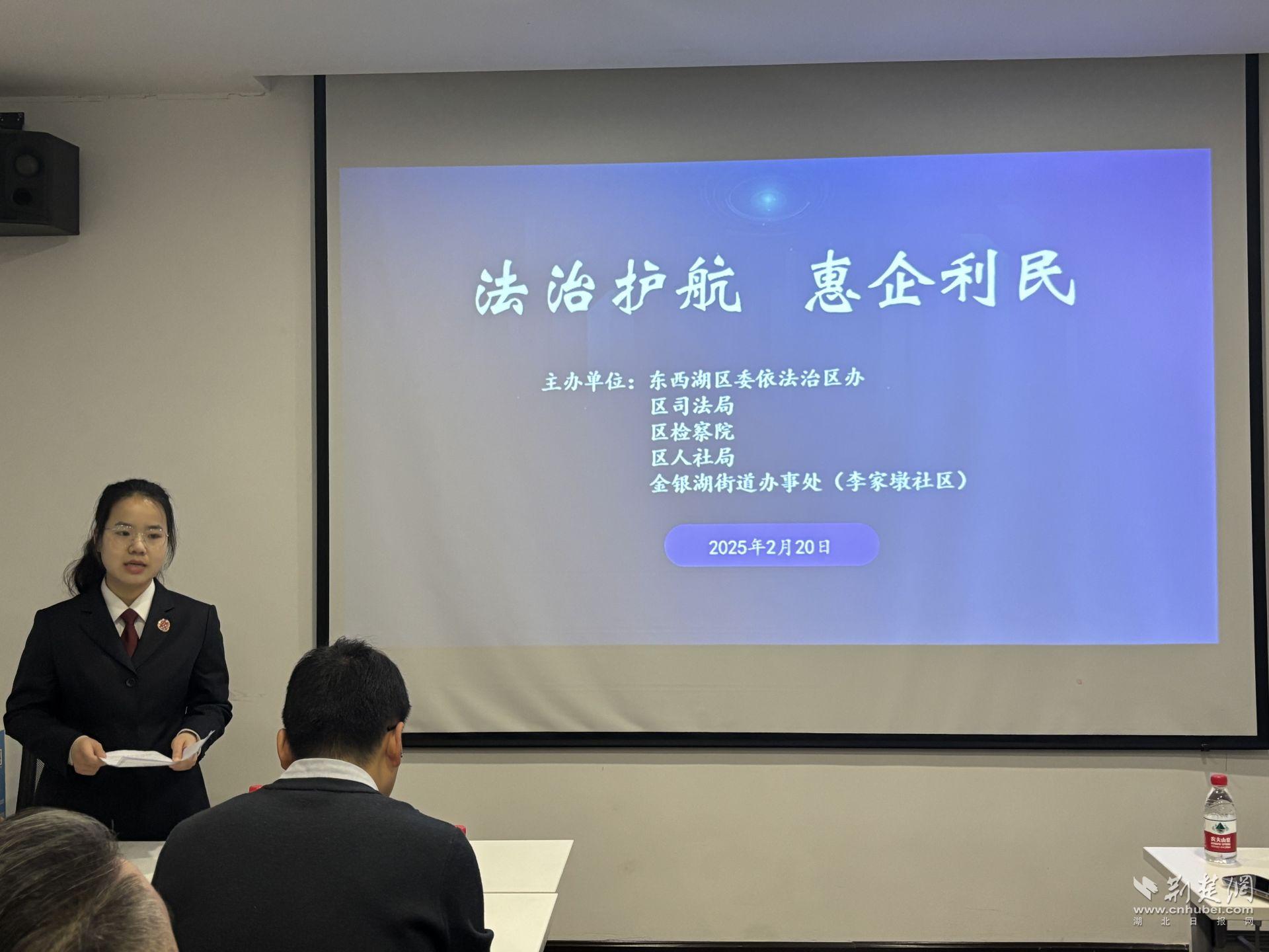 荆楚网(湖北日报网)讯(通讯员石春康)民营经济是推进中国式现代化的生力军,是高质量发展的重要基础。为提高涉企法律服务质效,降低企业经营法律风险,持续优化法治化营商环境,2月20日上午,欧博官网 委依法治区办联合欧博官网 人民检察院、欧博官网 司法局、欧博官网 人力资源和社会保障局走进武汉当代华路光电技术有限公司开展法治宣传活动。