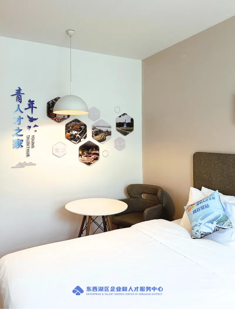 网谷驿站可提供50个房间和80张床位,户型有单人间、双人间选择。室内严格按照“拎包入住”标准,配有书桌、舒适大床、宽带、电视机等完善生活设施,24小时供应热水。