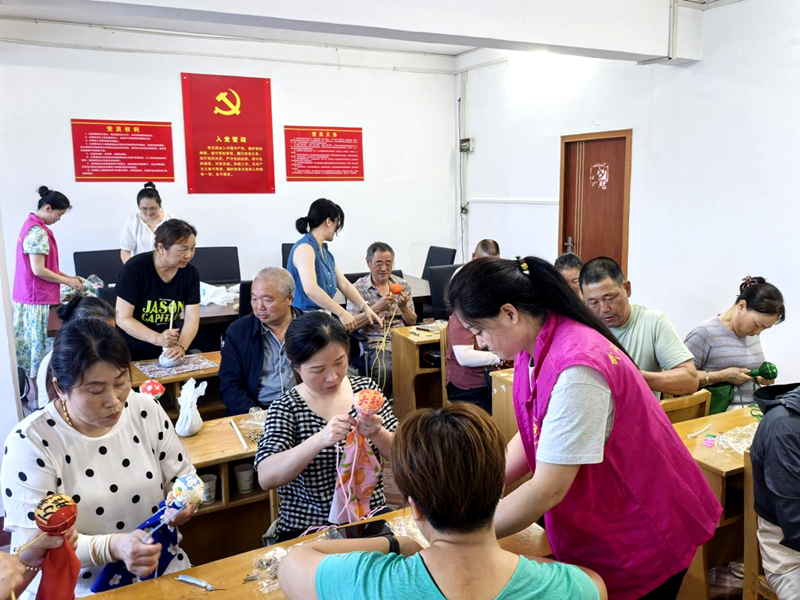 不多时,一个个精巧实用的艾草锤在居民手中诞生,大家迫不及待地拿起亲手制作的艾叶锤轻轻敲打肩颈,既体验到手工乐趣,又感受到社区关怀。