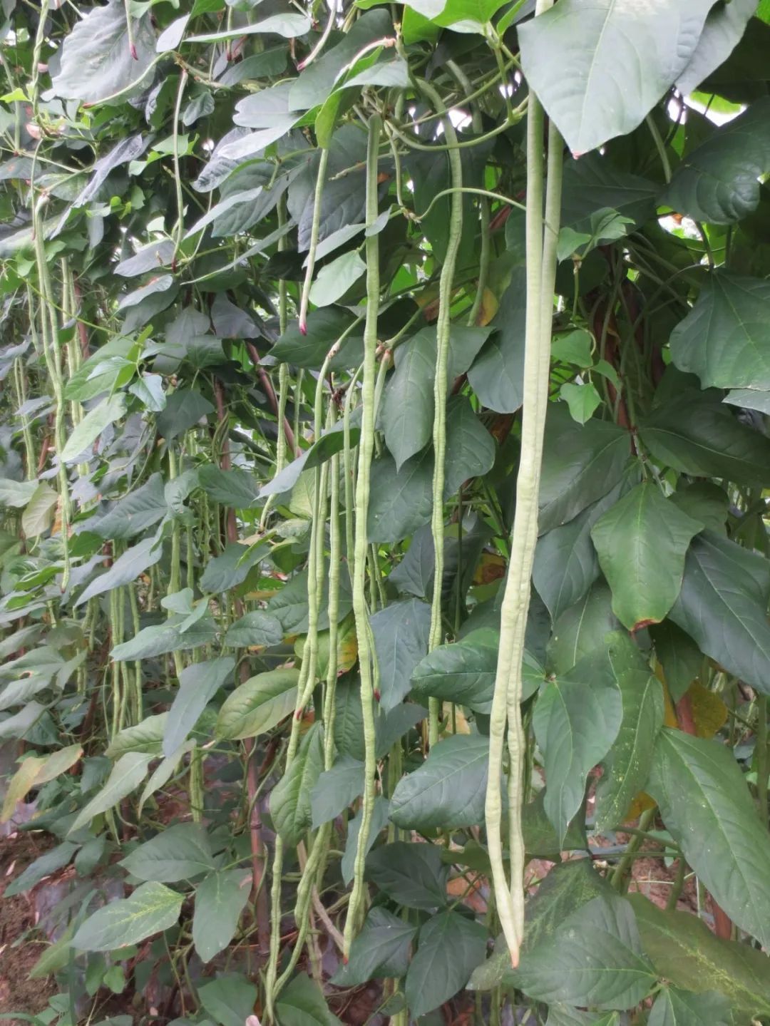 潘磊表示,除选用优质豇豆品种外,种植团队还创新采用立柱加挂爬藤网种植模式。与传统的人字架斜坡爬藤模式相比,该技术充分利用立体空间,引导豇豆藤蔓垂直生长。直立生长的植株通风透光性更佳,不仅降低了病虫害风险,还使豇豆形态更加挺直饱满,很好地解决了传统种植中豇豆易弯曲变形的难题,“堪称‘技术革命’!”