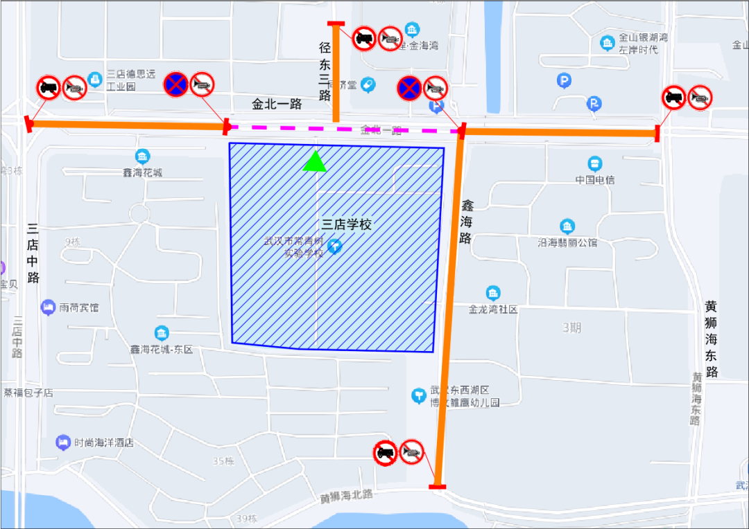 6月20日、6月21日(每日7时至17时30分),6月22日(7时至12时)期间,金北一路(黄狮海东路至三店中路)、鑫海路、径东三路(创想路至金北一路)禁止货车通行;金北一路(鑫海花城小区至鑫海路)禁止机动车停放(含南侧辅道停车泊位);鑫海路、径东三路禁止机动车停放(除停车泊位外)。
