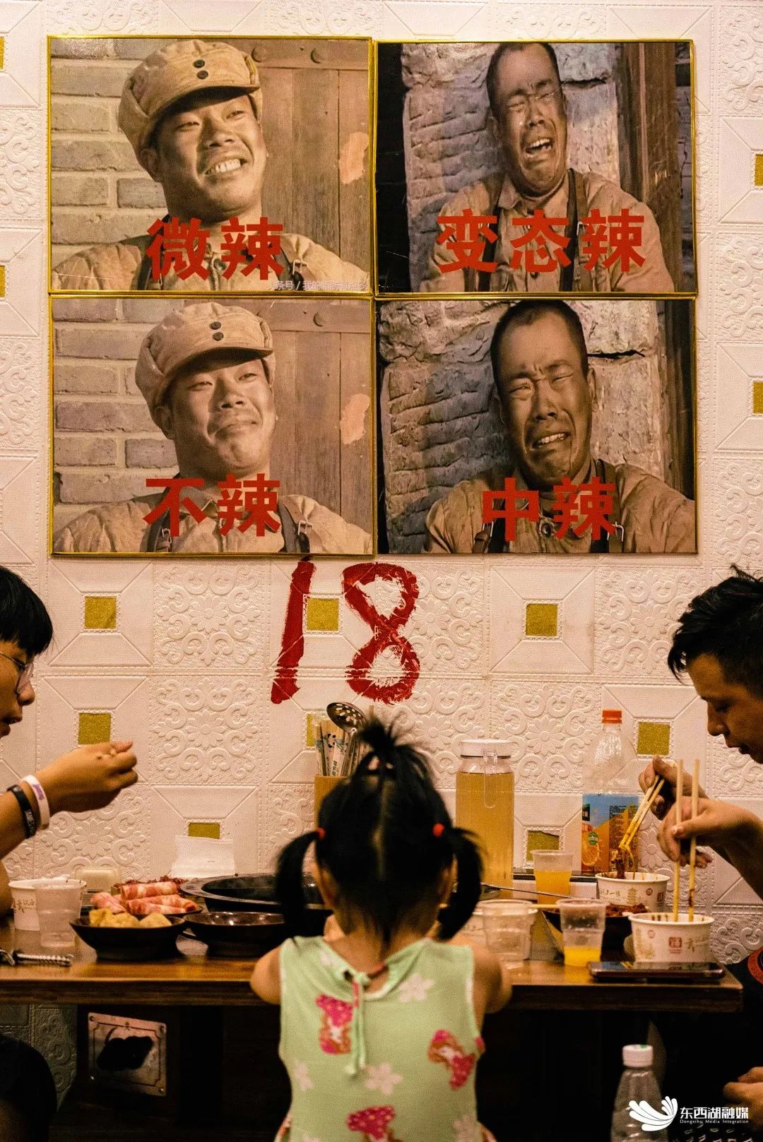 店里幽默创新的标语,搞怪风趣的图片,贴满整个墙面。“吃的有意见请当面批评指正,莫到处乱说”就算面对食客刁钻的点评,这份从骨子里透出的直爽,让顾客直呼“巴适的很”。