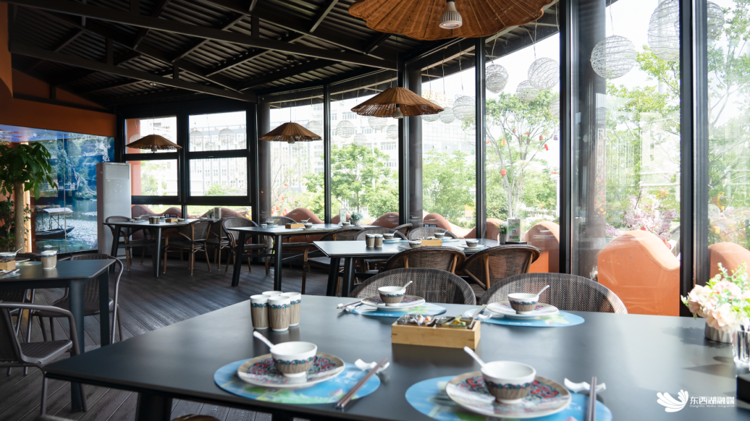 如果说金湖庭院是精心雕琢的工笔画,相隔7公里的晓江湖则像泼墨写意的山水画卷。这家江南庭院餐厅,将“江湖”二字刻进基因。