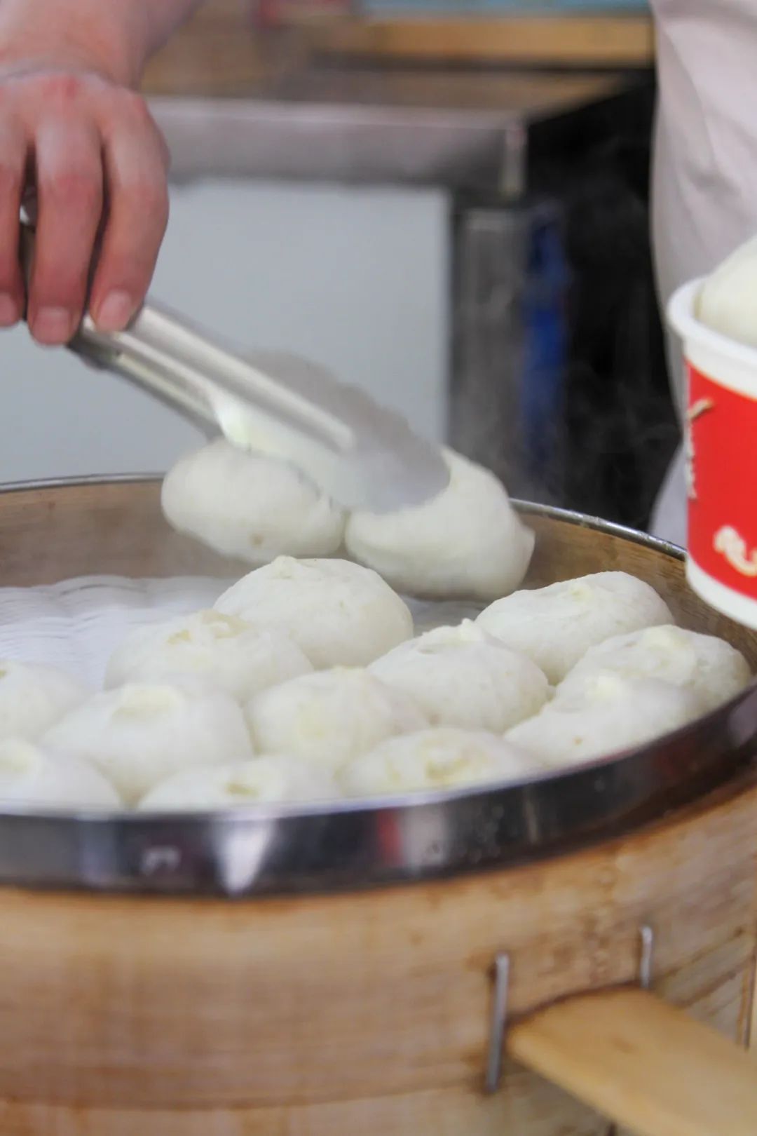 隔壁蒸笼掀开的刹那,麦香混着肉鲜破雾而来。午夜便开始发酵的老面团,经多次折叠捶打,在案板上延展成薄透如纸、盈盈透光的圆皮。店主老周夫妇手法娴熟至极,拇指轻快旋转,填馅、捏褶一气呵成,短短几秒,一只小巧玲珑的包子便在指尖诞生,每一道褶皱都似藏着美味密码。