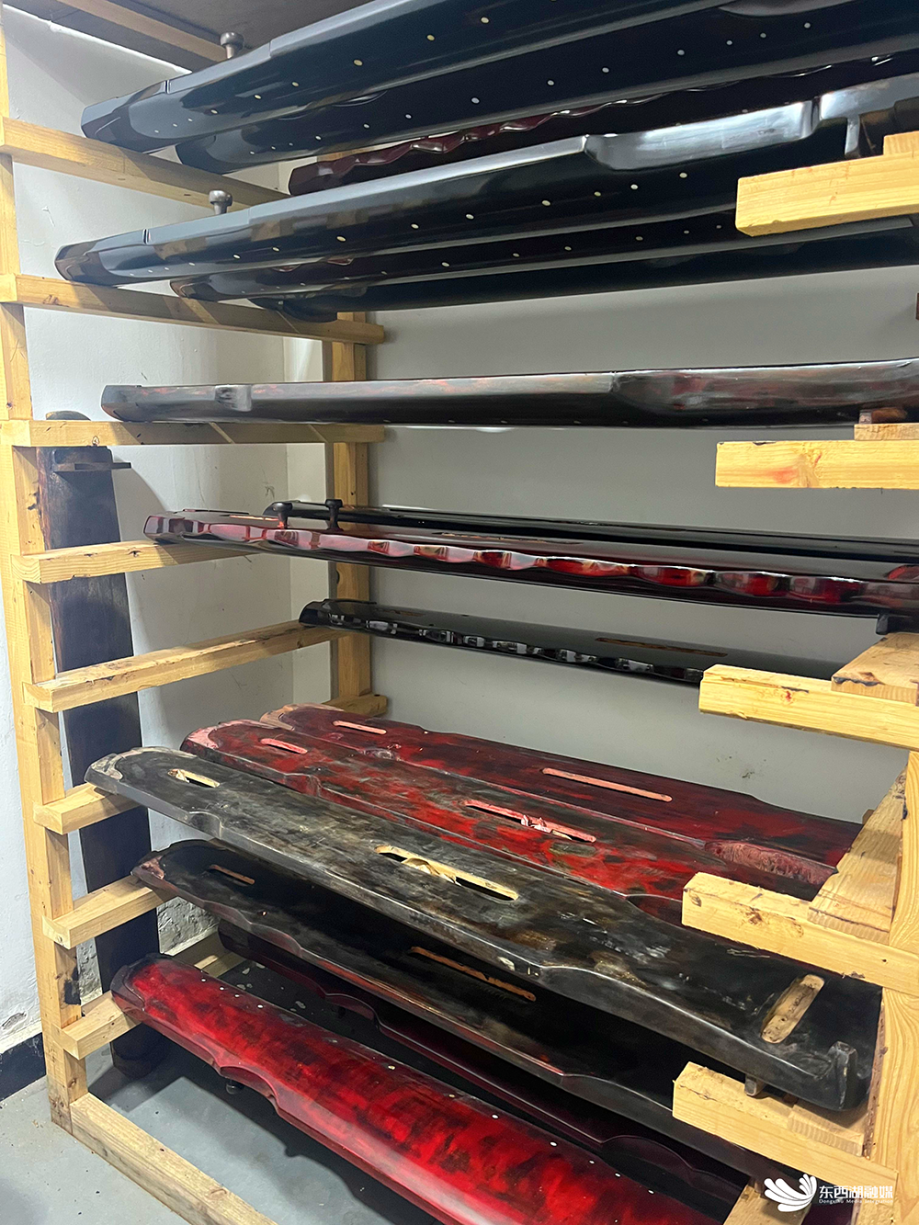 工作室另一头是一处漆房,里面搭着木架,目的是为了晾干琴身上的漆,既不能烘烤,也不能暴晒,需要恒定的湿度,让时间打磨定型。