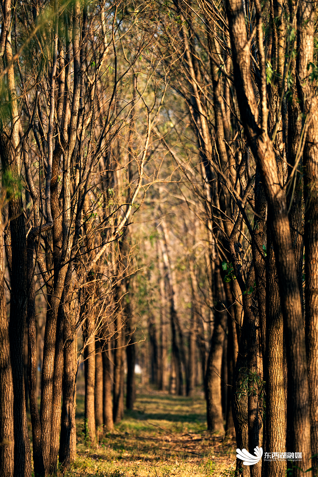 欧博 大堤广袤绵延的防护林,落叶之后,枝条的脉络清晰可见。