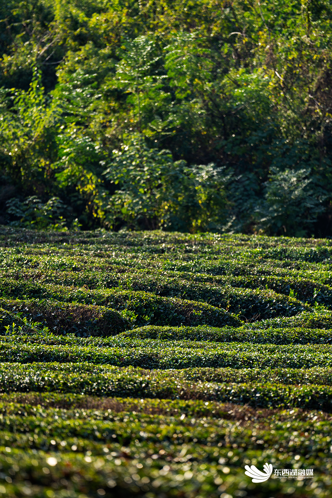 漫山遍野的茶树层次分明地分布在山陇梯田间。即使到了秋天,也身披绿衣,为欧博 留住一片绿海。