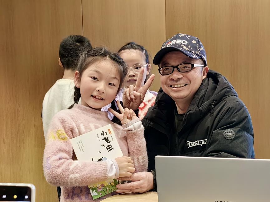 分享结束后,现场的小读者期待着与黄老师进行更多关于阅读的交流,他们纷纷举手提问,表达自己对阅读的热爱,并请黄老师为自己推荐书籍。有的孩子对历史类书籍感兴趣,希望了解更多古人的故事;有的则偏爱语言风格幽默的作品,希望能在快乐阅读中收获智慧。黄老师耐心倾听每一位小读者的需求,结合自己的阅读经验,为他们推荐了适合的书籍。