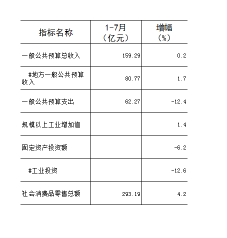 全区主要经济指标(2024年7月)