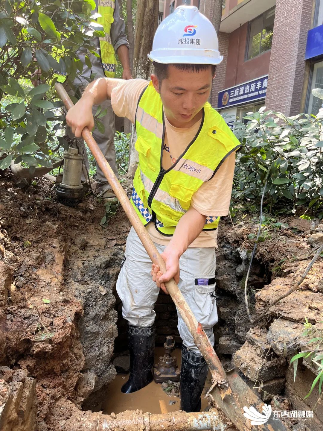张松涛挥舞铁锹寻找漏点