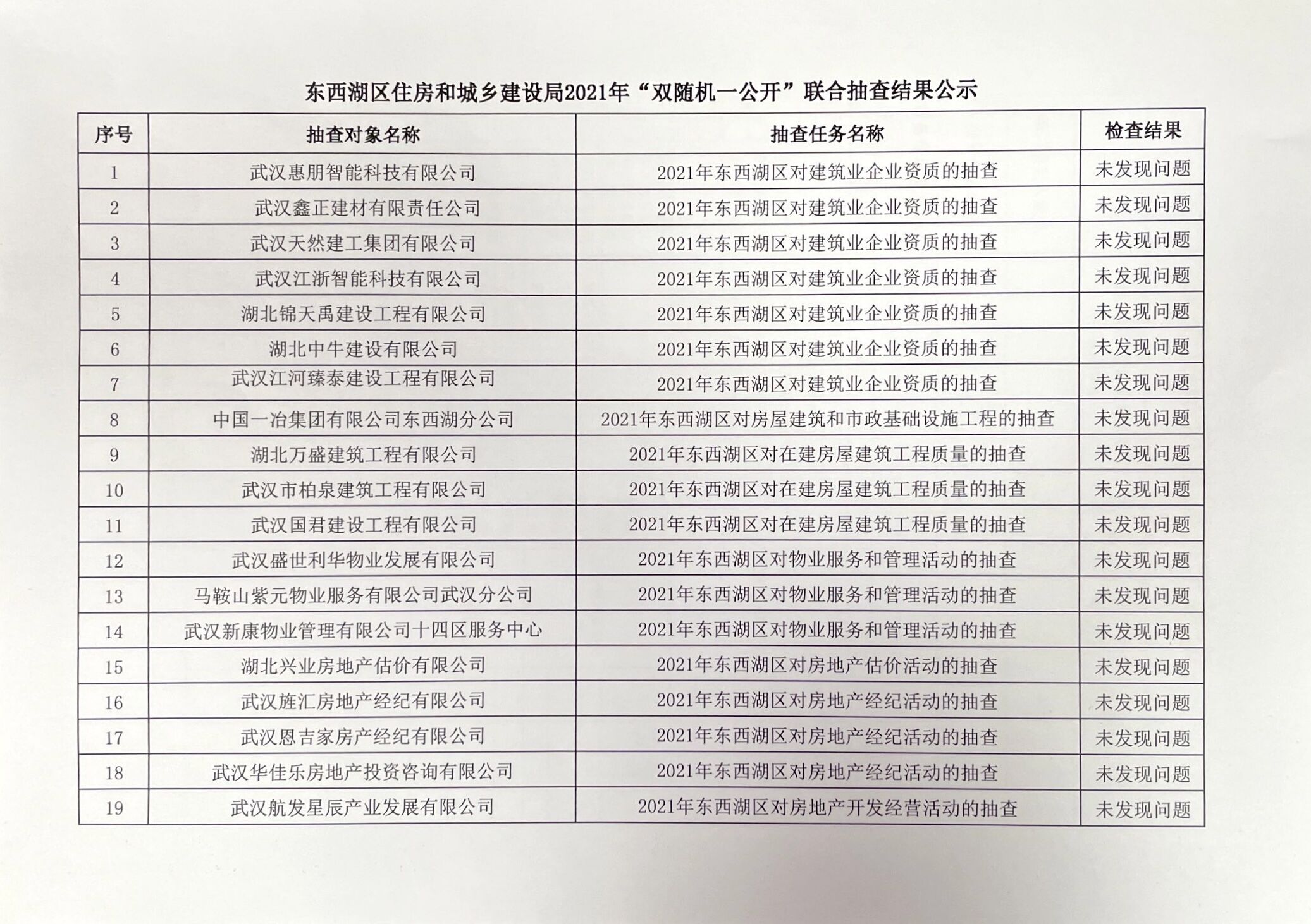 住房和城乡建设局2021年“双随机、一公开”联合抽查结果公示