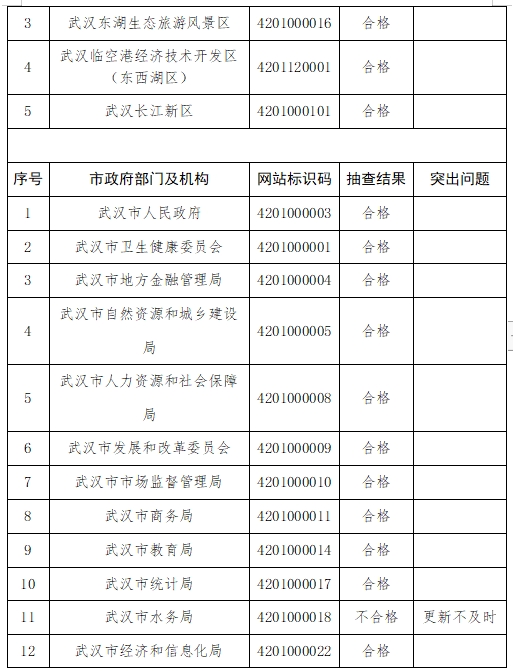 (一)政府网站。本次抽查结果较上季度有所提升,但栏目更新不及时和空白栏目现象仍然存在,少数政府网站“动态要闻”栏目超2周未更新、“政策文件”栏目超6个月未更新或打不开,尤其是市水务局、市民宗委、武昌区政府网站仍出现与上季度类似问题。同时,部分政府网站站内搜索功能不完善,发布的政策文件缺少相关解读文件支持,留言公开不及时、互动回应质量不高等问题仍待解决。