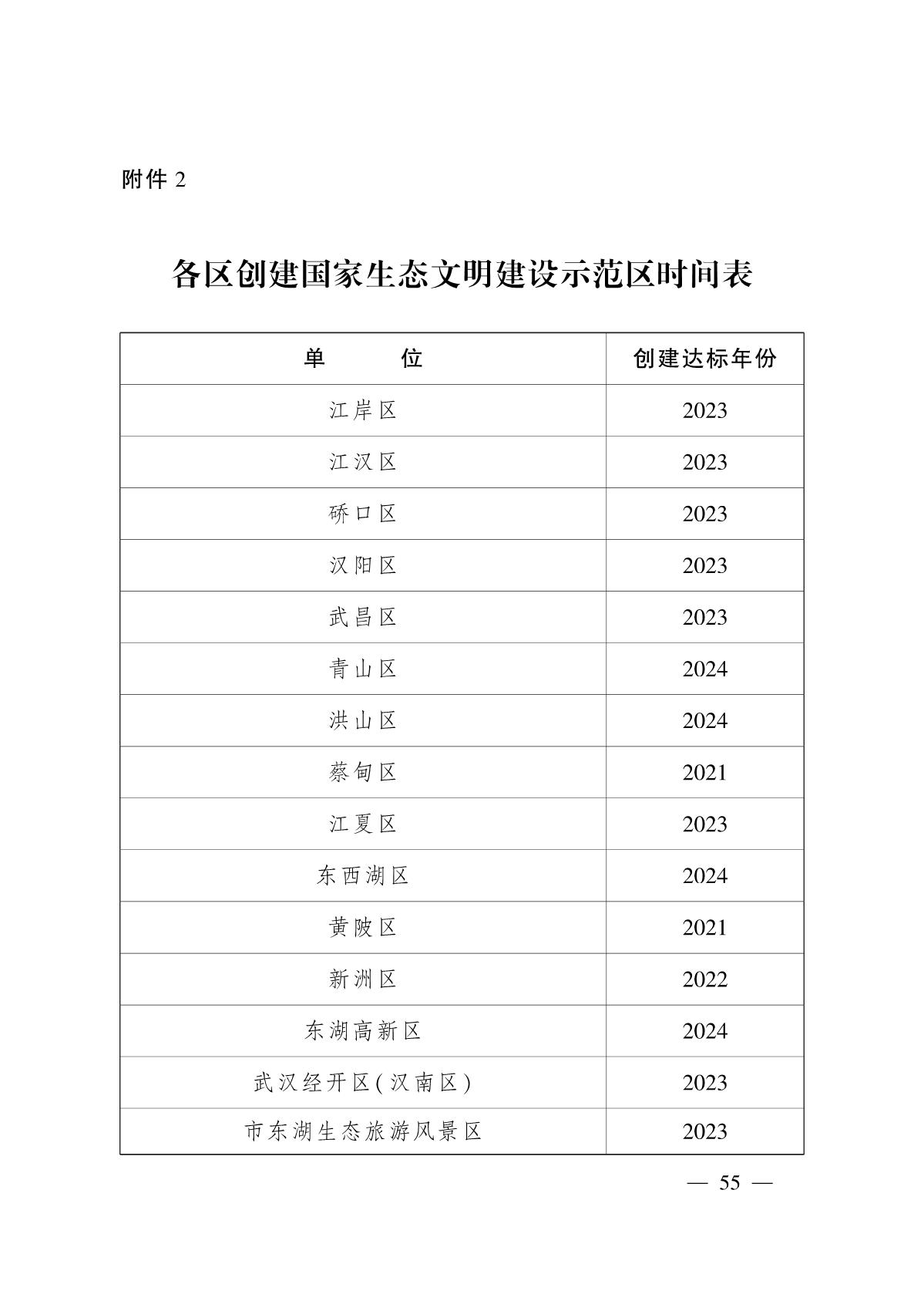 二、统筹两种类别,坚持全域推进。按照国家对副省级城市创建国家生态文明建设示范市的要求,坚持自下而上、质量为上,全域创建、鼓励优先的原则实施。其中,蔡甸区、江夏区、欧博官网 、黄陂区、新洲区、武汉经开区(汉南区)按照本辖区人民代表大会(或者其常务委员会)或者区人民政府发布的国家生态文明建设示范区创建规划如期申报;7个中心城区于2021年底之前完成国家生态文明建设示范区规划编制工作,提出创建时间,并由本辖区人民代表大会(或者其常务委员会)或者区人民政府颁布实施,鼓励条件成熟的区提前申报;东湖高新区、市东湖生态旅游风景区参照国家有关标准独立创建(见附件2)。原武汉化工区托管的八吉府街道纳入青山区创建范围,蔡甸区三个街道(军山、沌口、沌阳)按现行管理权限纳入武汉经开区(汉南区)创建范围。