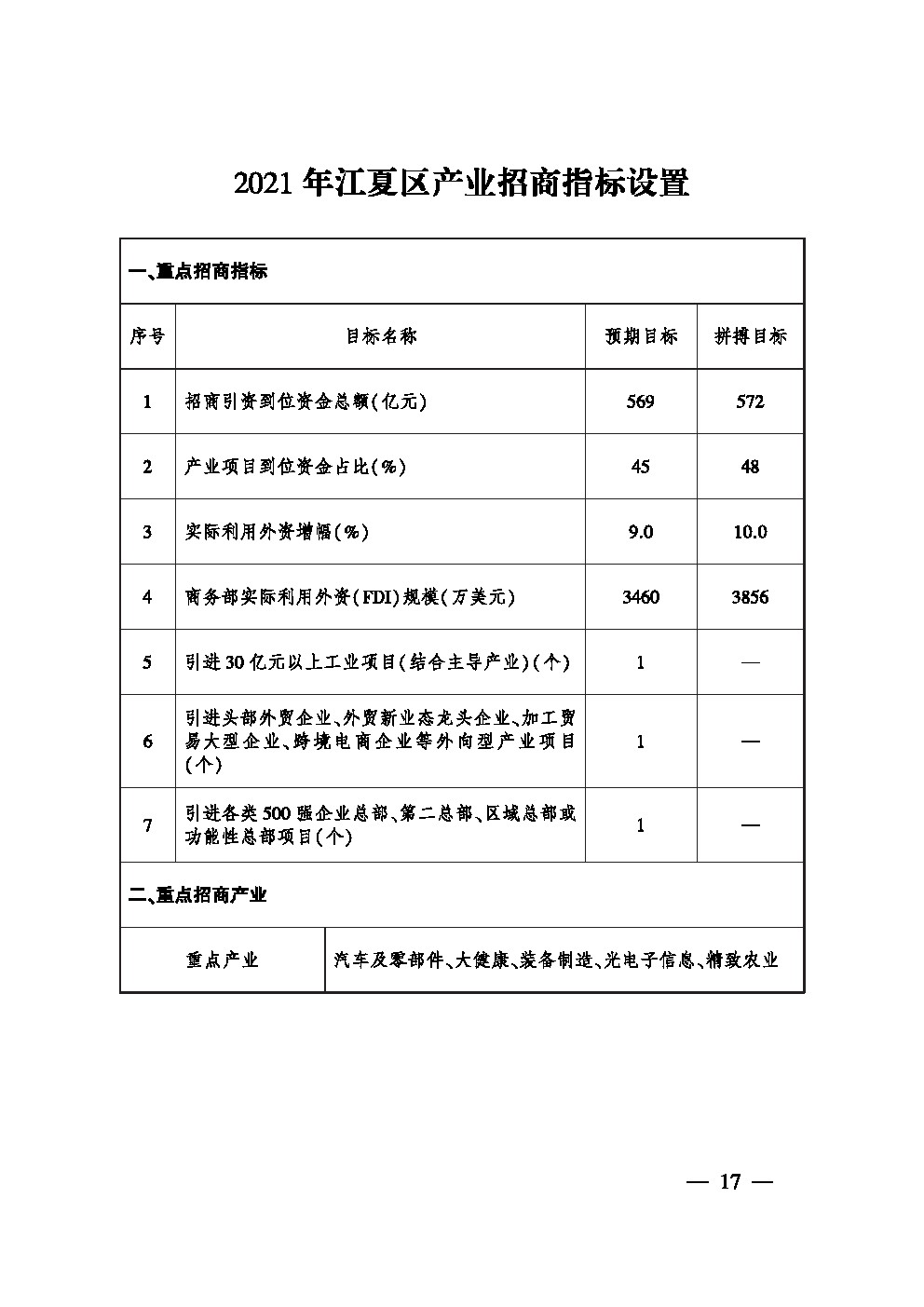 把招商引资作为“一号工程”“一把手工程”,2021年全市招商引资到位资金和实际利用外资质量进一步提升,招商引资签约项目结构进一步优化。具体目标为: