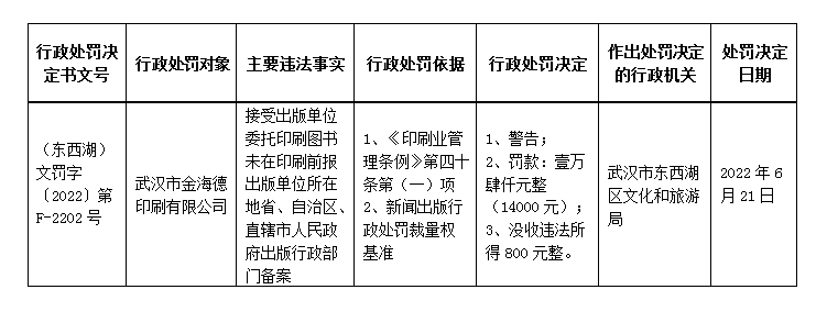 行政处罚结果