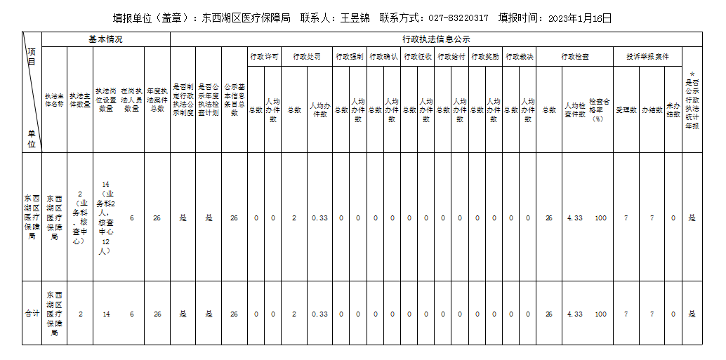2022年度欧博官网 医疗保障局行政执法统计年报表