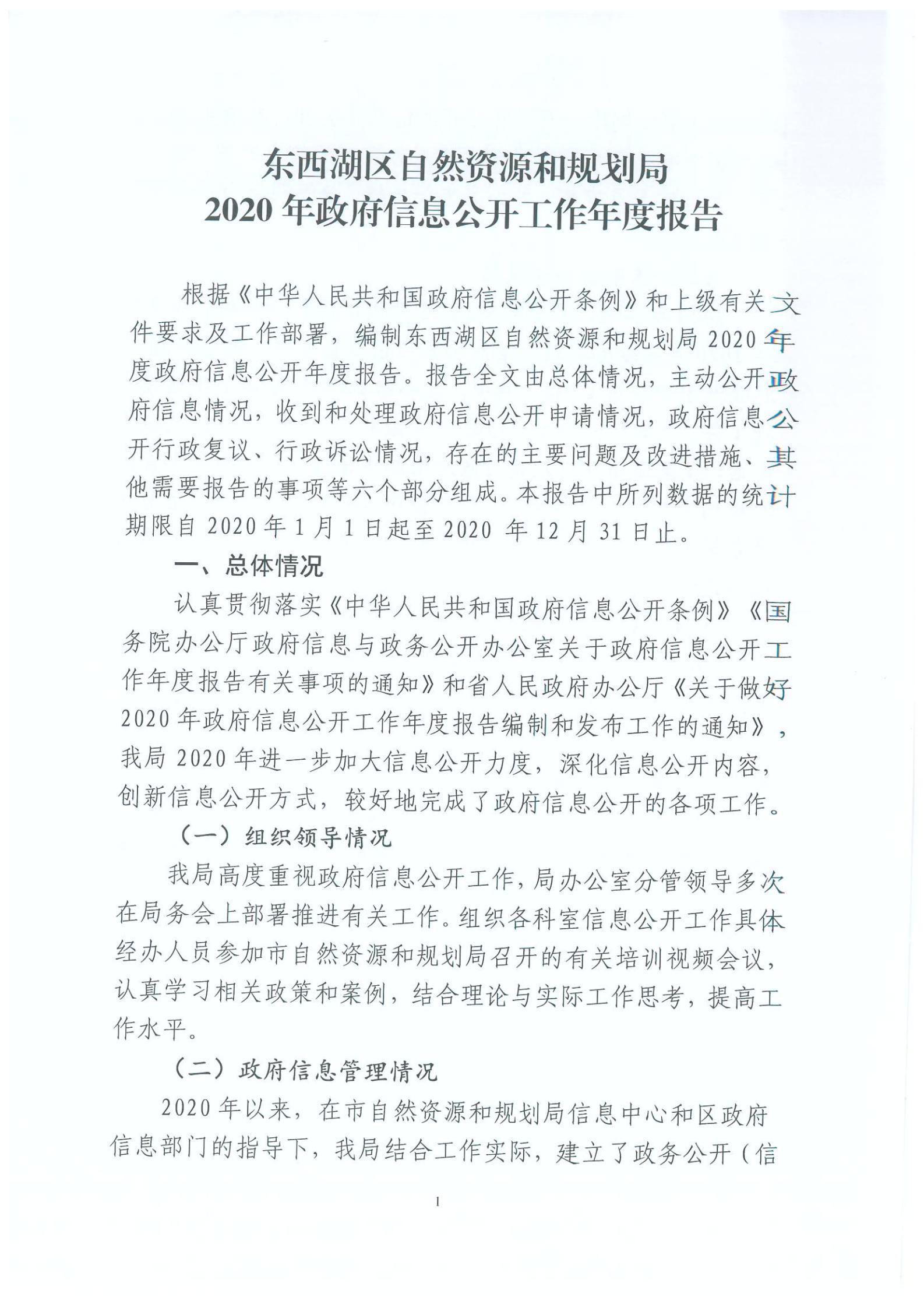 欧博官网 自然资源和规划局2020年政府信息公开工作年度报告
